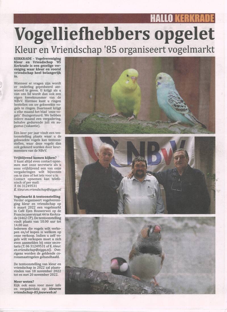 Vogel vereniging Kleur en Vriendschap '85 Kerkrade